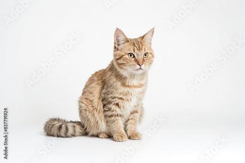 Obraz premium Adorable Ginger Cat Sitting on White Background