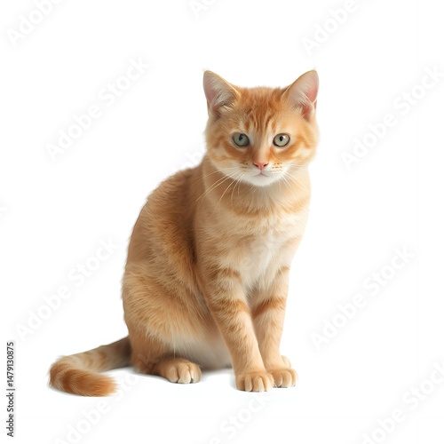 Obraz premium Adorable Ginger Kitten Sitting on White Background Pet Studio Shot
