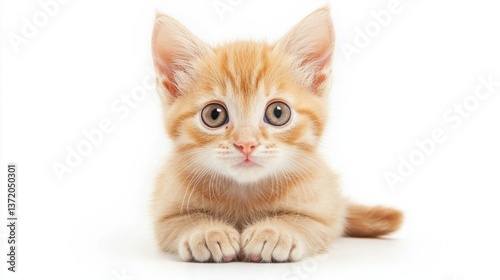 © Napasnan, Obraz premium Adorable ginger kitten with large eyes, exploring its surroundings