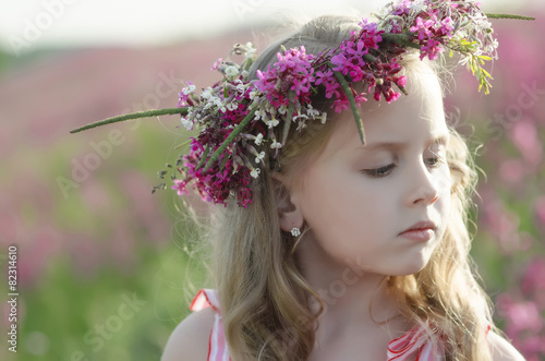 © nataljagolubova, Fototapeta premium Adorable girl with flowers