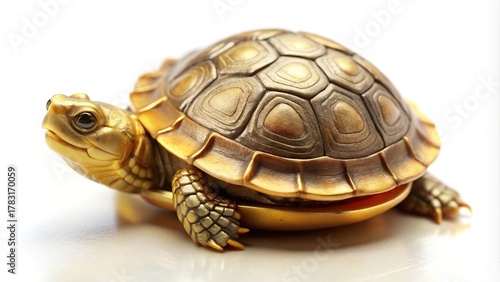 © Image World, Fototapeta premium Adorable golden coin turtle realistic creature isolated on white