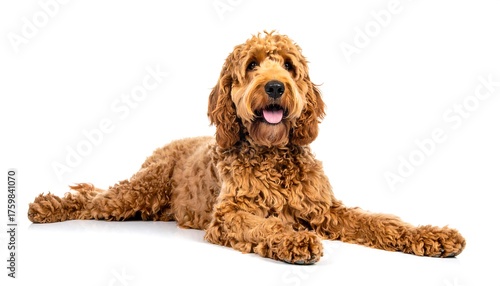 © Garlina, Fototapeta premium Adorable Golden Doodle Dog Relaxing on White Background.