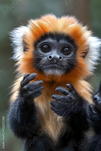 © Nadiyah, Fototapeta premium Adorable golden langur monkey portrait, close-up.
