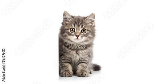 © Elitemedia, Obraz premium Adorable Gray Kitten, Fluffy Fur, Big Eyes, Studio Shot, White Background