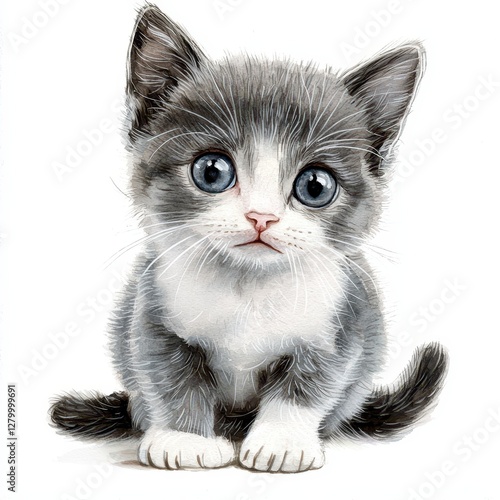 © ArthurGraphix, Obraz premium Adorable gray kitten playing home setting animal portrait bright environment close-up view