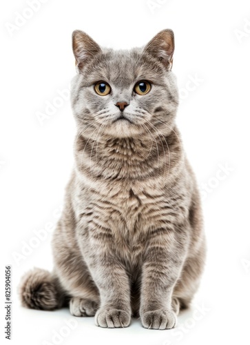 © Gelpi, Obraz premium Adorable Gray Kitten Sitting and Looking Curiously at Camera Against White Background - Generative AI