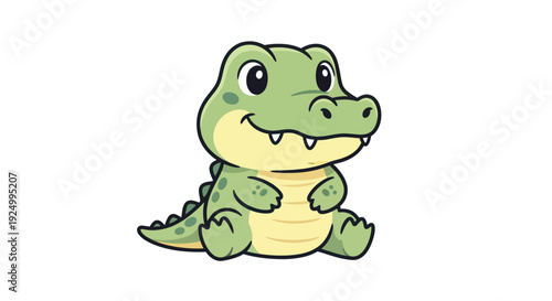 Fototapeta premium Adorable Green Alligator Cartoon Character