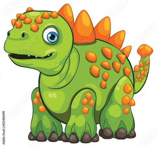 © blueringmedia, Fototapeta premium Adorable green dinosaur with orange spikes