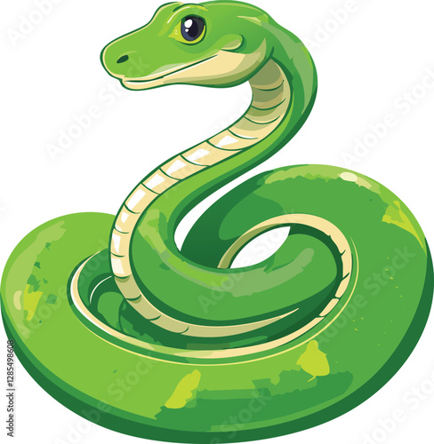 Fototapeta premium Adorable Green Python Illustration Coiled Up in a Charming Pose, Vibrant...