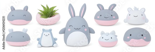 © milenialdesastudio, Obraz premium Adorable grey and pink animal-shaped planters and succulent pot.