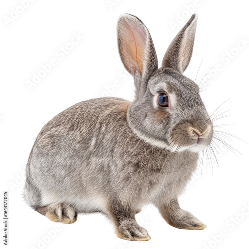 © darshika, Fototapeta premium Adorable grey rabbit, sitting, facing right, isolated on transparent background. background removed