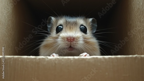 Fototapeta premium Adorable Hamster Peeking From Cardboard Box