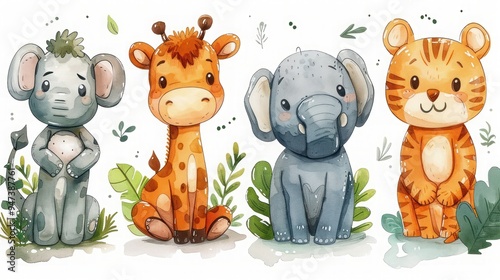 Naklejka premium Adorable Hand-Drawn Set of Friendly Wild Animals - Tiger, Hippo, Zebra,...