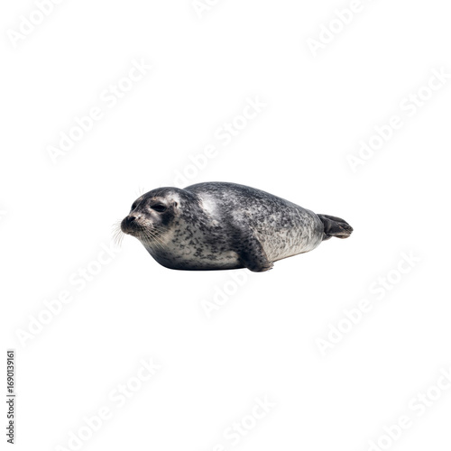 © Rivi, Fototapeta premium Adorable Harbor Seal Pup on Black Background