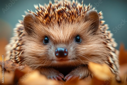 Fototapeta premium Adorable hedgehog nestled among fall foliage, creating a charming autumnal scene