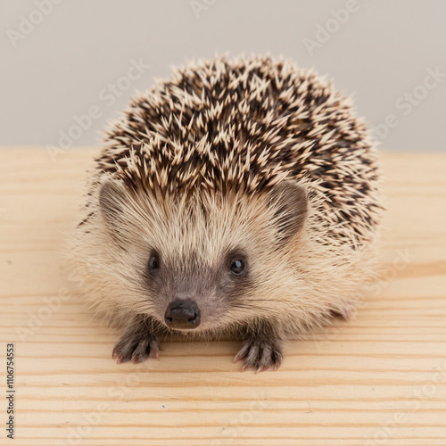 Fototapeta premium Adorable Hedgehog on Wooden Surface