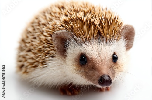 © Balaraw, Fototapeta premium Adorable hedgehog portrait with spiky quills on white background