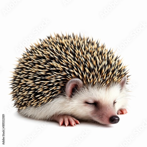 © Waqas, Obraz premium Adorable hedgehog sleeping peacefully isolated on white background, showcasing its spiky fur and cute features