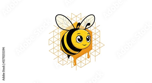 Obraz premium Adorable Honeybee Cartoon Illustration Honeycomb Design AI Generated