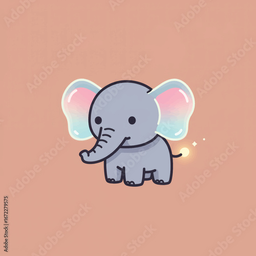 © Creative_art, Naklejka premium Adorable illustrated baby elephant with iridescent bubble ears and a magical glowing tail.