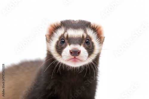 © Rizvan, Fototapeta premium Adorable juvenile ferret against a plain white backdrop