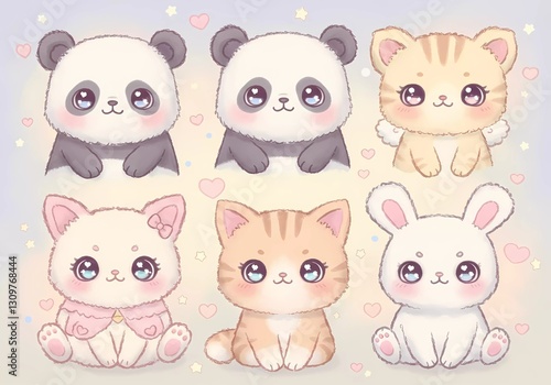 © Ahmad, Fototapeta premium Adorable Kawaii Animal Collection: Pandas, Kittens, and Bunny