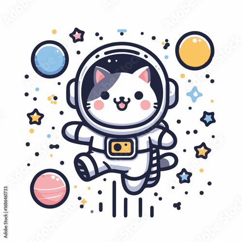 Naklejka premium Adorable Kawaii Cat Astronaut Exploring the Stars in Outer Space Adventure