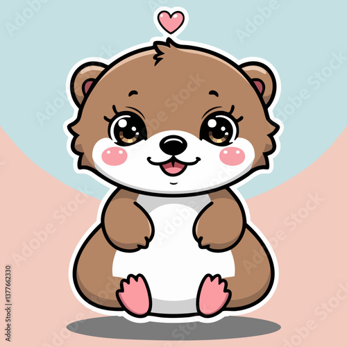 © devilvet, Naklejka premium Adorable kawaii otter with big sparkling eyes