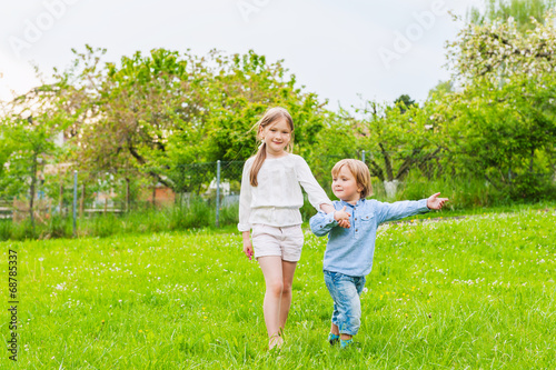 © annanahabed, Fototapeta premium Adorable kids playing outdoors