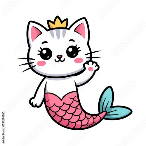 © Urmi, Obraz premium Adorable kitten dressed as a mermaid princess with a sparkling crown
