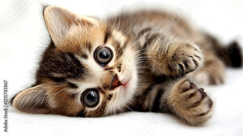 Fototapeta premium Adorable Kitten Lying Down Soft Fur Big Eyes