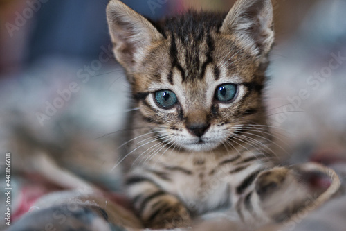 Fototapeta premium Adorable kitten on the bed