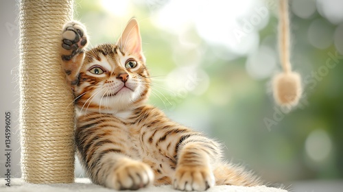 © Adine, Naklejka premium Adorable kitten playing on cat tree