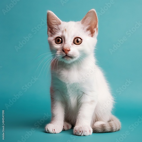 © AlexandraRooss, Obraz premium Adorable Kitten Portrait on Turquoise Background for Pet Lovers Generative AI
