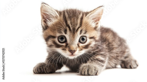 © konsak, Obraz premium Adorable Kitten Sitting on White