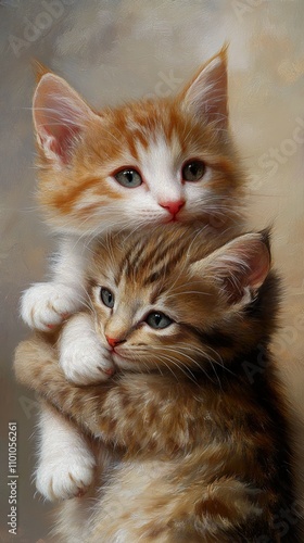 © Infinity, Obraz premium Adorable Kittens Embracing: A Heartwarming Display of Feline Affection