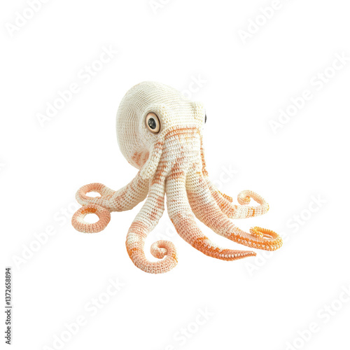 Fototapeta premium Adorable Knitted Octopus Toy, White and Peach Crochet Sea Creature
