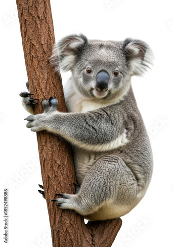 Naklejka premium Adorable koala bear climbing a tree with a curious expression