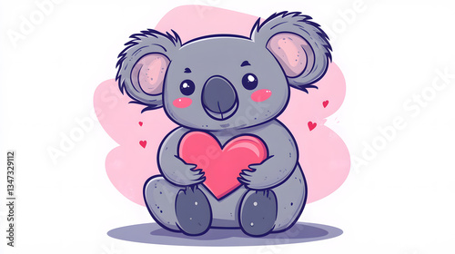 © Henrry, Obraz premium Adorable Koala Cartoon Holding Love Cartoon Vector Illustration