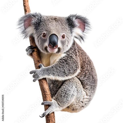 © MMaazgraphicx , Naklejka premium Adorable Koala Hanging on a Branch Isolated on White Background