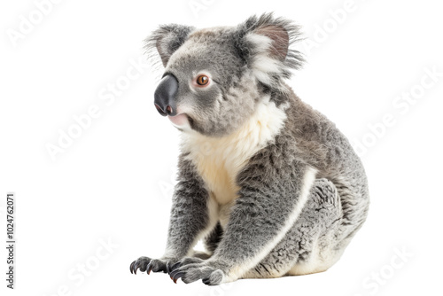 Naklejka premium Adorable koala on transparent background: cute marsupial with soft fur.