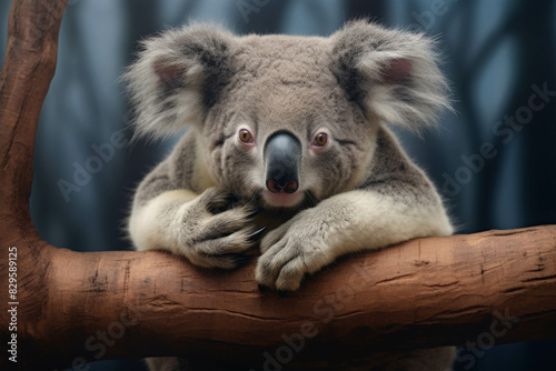Fototapeta premium Adorable koala resting on a tree branch in a serene forest setting,...