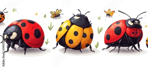 Fototapeta premium Adorable Ladybugs Collection: A Vibrant Display of Red and Yellow Insects