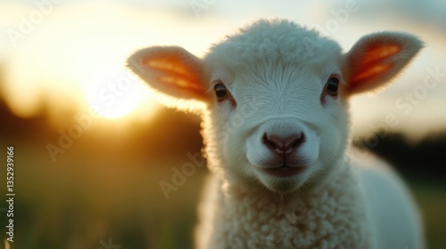 Obraz premium Adorable lamb at sunset