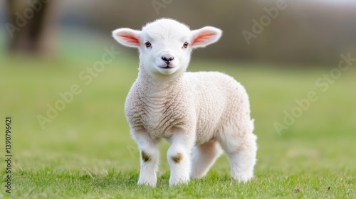 © MAKASIHMAS SIDNEY, Obraz premium Adorable lamb in a grassy field