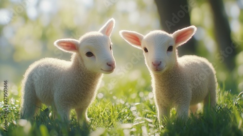 Obraz premium Adorable Lambs in a Field