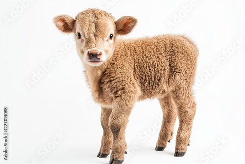 © Zahra, Fototapeta premium Adorable light brown calf, standing on white background.