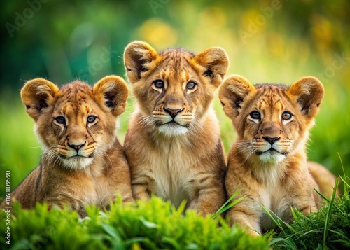 © Danicha, Obraz premium Adorable Lion Cubs: Playful Portraits of Different Sizes