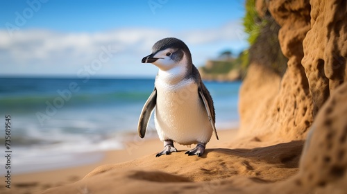 Naklejka premium Adorable Little Penguin (Eudyptula minor) enjoying the coastal charm of...
