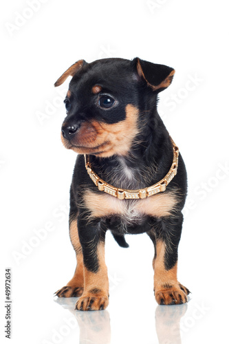 © otsphoto, Obraz premium adorable little puppy with beautiful gold collar